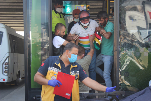 Kaza yapan otobüsteki yaralı yolcular kendini kaldırıma attı