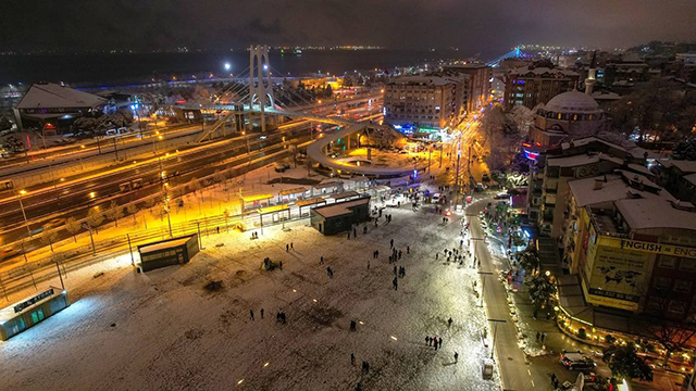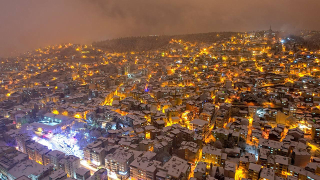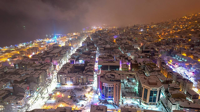 Kocaeli'de cuma günü akşam saatlerinde etkisini gösteren yoğun kar yağışı kenti beyaza bürüdü. Önemli kış turizmi destinasyonlarından Kartepe'nin zirvesinde kar kalınlığı 3 metreye yaklaşınca tatilciler ise karın keyfini sürmeye başladı. Dört mevsim ayrı bir güzelliğe bürünen Kocaeli'de akşam saatlerinde çekilen kış fotoğrafları da hayranlık uyandırdı. Kar ve şehrin ışıklarının birleştiği kış güzelliği, dron ile havadan da görüntülendi.