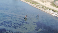 Şahıslardan birinin, suda kamufle olabilmek için giydiği özel dalgıç kıyafetiyle, kaçak şekilde avlanma anı da insansız hava aracı tarafından saniye saniye görüntülendi.