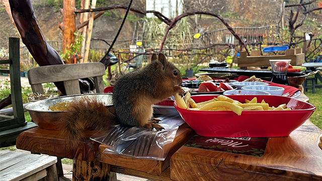 Sincap 'Alvin' çay içiyor, cips yiyor, otomobille geziyor