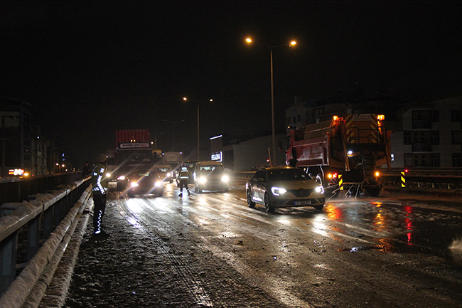Kocaeli’nin Körfez ilçesinde kar sebebiyle buzlanan yolda kayan 13 araç kazaya karıştı. İstanbul ve Ankara istikametinde toplam 5 ayrı noktada meydana gelen kazada yollar yaklaşık 1 saat sonra açılabildi.