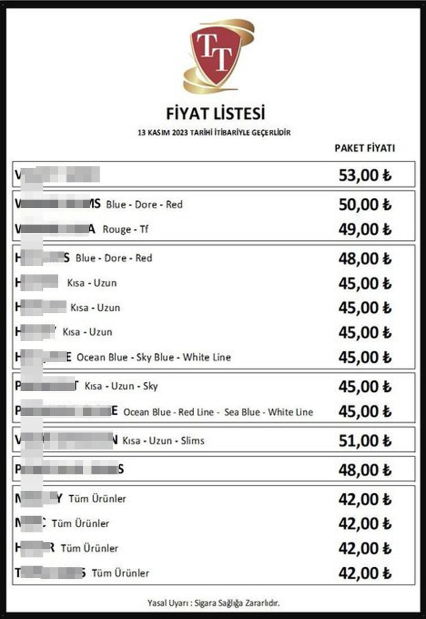Buna göre T&T grubuna ait sigaraların güncel fiyatları yarından itibaren şöyle olacak: