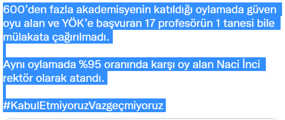 Boğaziçi Üniversitesi rektörlüğüne atanan Mehmeh Naci İnci'nin atanmasının ardından sosyal medyada tepkiler ard arda gelmeye başladı.