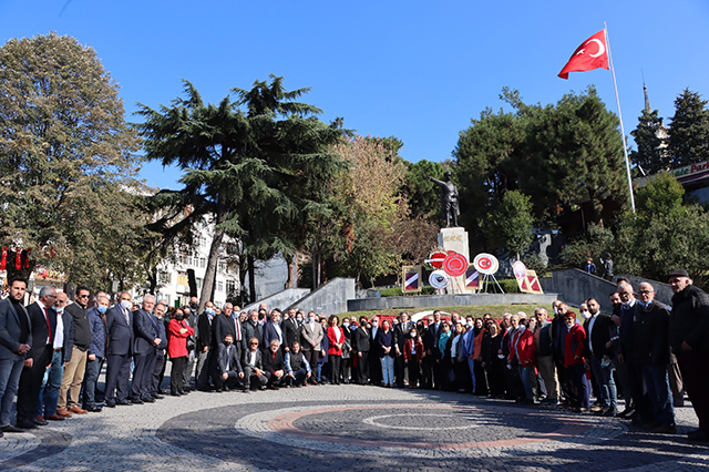 CHP Kocaeli İl Başkanı Harun Özgür Yıldızlı, İl Gençlik Kolları Başkanı Zeki Karakadılar ve İl Kadın Kolları Başkanvekili Aslıhan Başkal tüm örgüt adına parti çelengini Atatürk Anıtı’na bıraktı. Cumhuriyet’imizin kurucusu ulu önderimiz Gazi Mustafa Kemal Atatürk ve azizi şehitlerimiz için saygı duruşunda bulunularak İstiklal Marşı’nın okunmasının ardından CHP Kocaeli İl Başkanı Harun Özgür Yıldızlı, günün anlam ve önemini belirten bir konuşma yaptı. Başkan Yıldızlı yaptığı konuşmada şu ifadelere yer verdi;