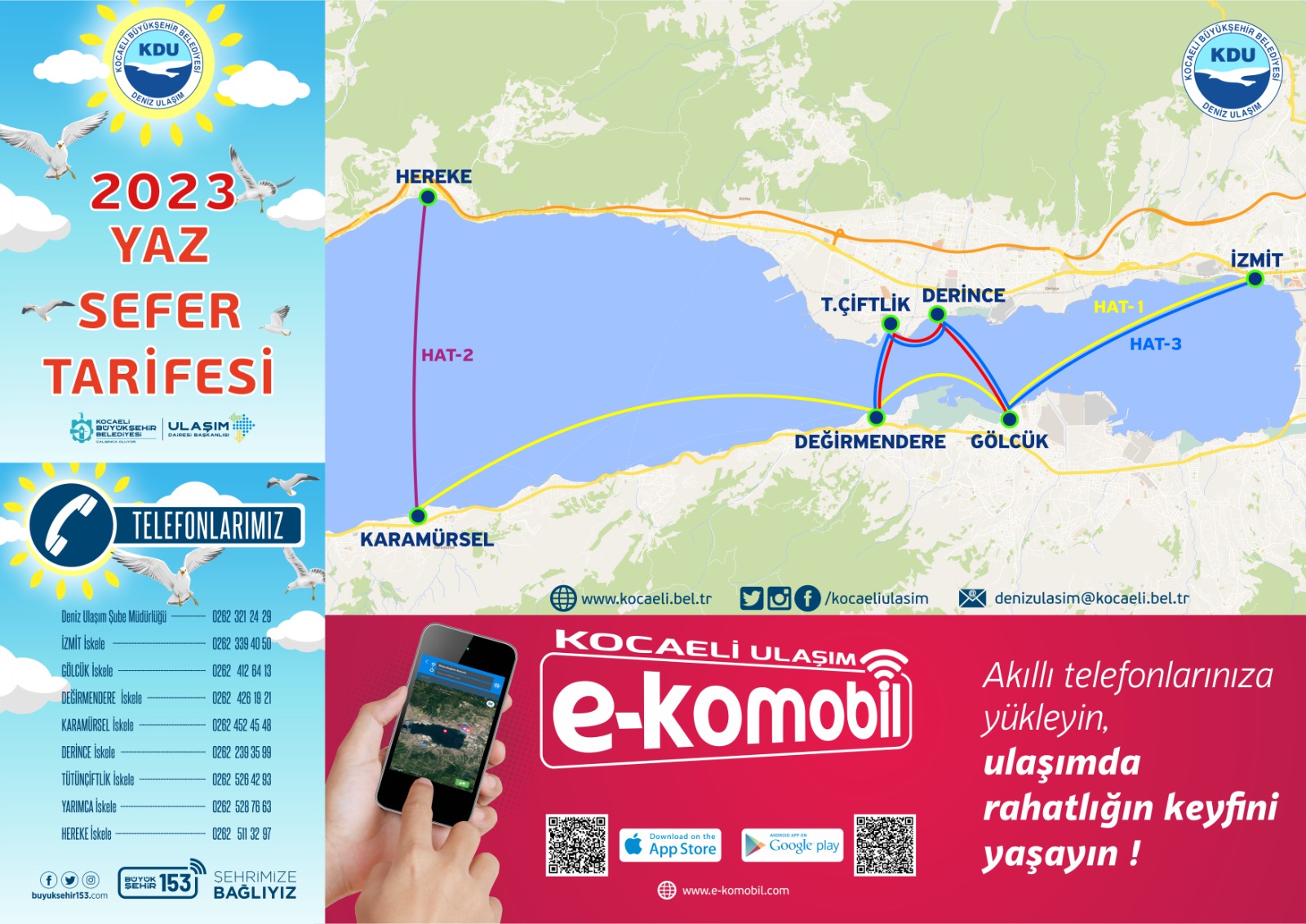 Okulların kapanması ve çalışma saatleri göz önünde bulundurulan yaz sefer tarifesine Kocaeli Büyükşehir Belediyesi İnternet sitesi ve E-komobil uygulamasından ulaşılabiliyor.