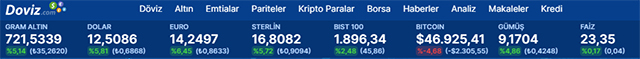 Gram altın ise 721 TL'den işlem görüyor.