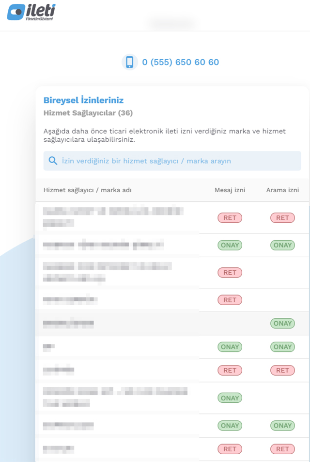 https://iys.org.tr/ adresinde yer alan ‘Vatandaş Girişi’ butonunu tıklayarak telefon numarası veya e - posta adresiyle hangi hizmet sağlayıcılara ticari elektronik ileti gönderimi için onay verildiği kontrol etmeliyiz.Burada geçmişte hangi firmalara verilmiş izinleri liste halinde bulabilir, istediklerinizindaha önce verilmiş olan izinleri iptal edebilirsiniz.