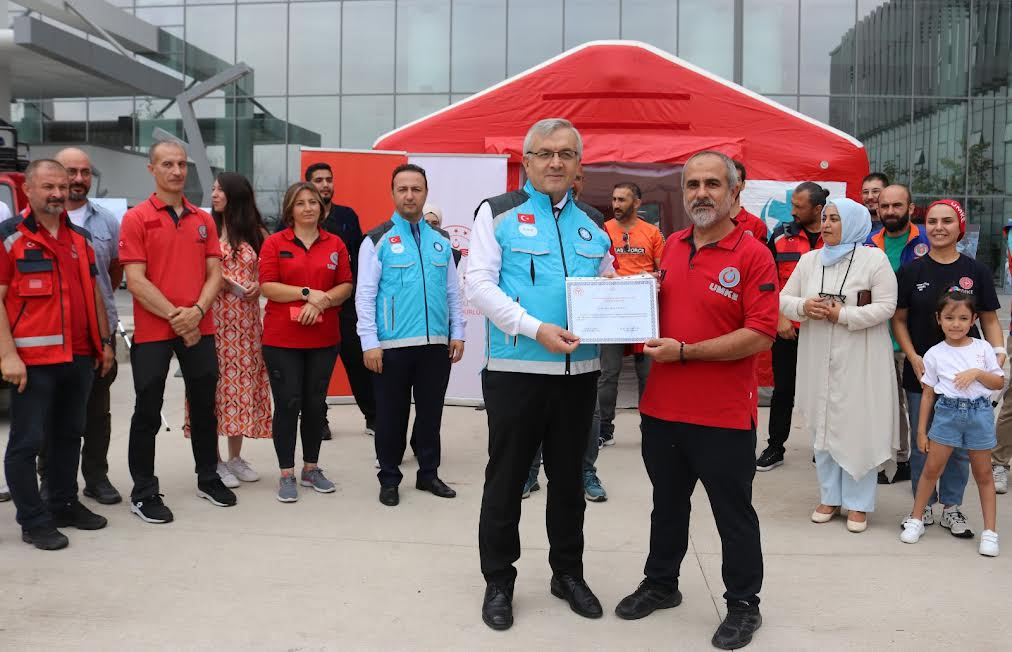 Program sırasında; İl Sağlık Müdürü Op. Dr. Yüksel Pehlevan tarafından, kahraman UMKE ekiplerinde görev alan en genç gönüllü Ergun Taşdı ve en tecrübeli gönüllü Adem Kurtoğlu’na teşekkür belgesi takdiminde bulunuldu.