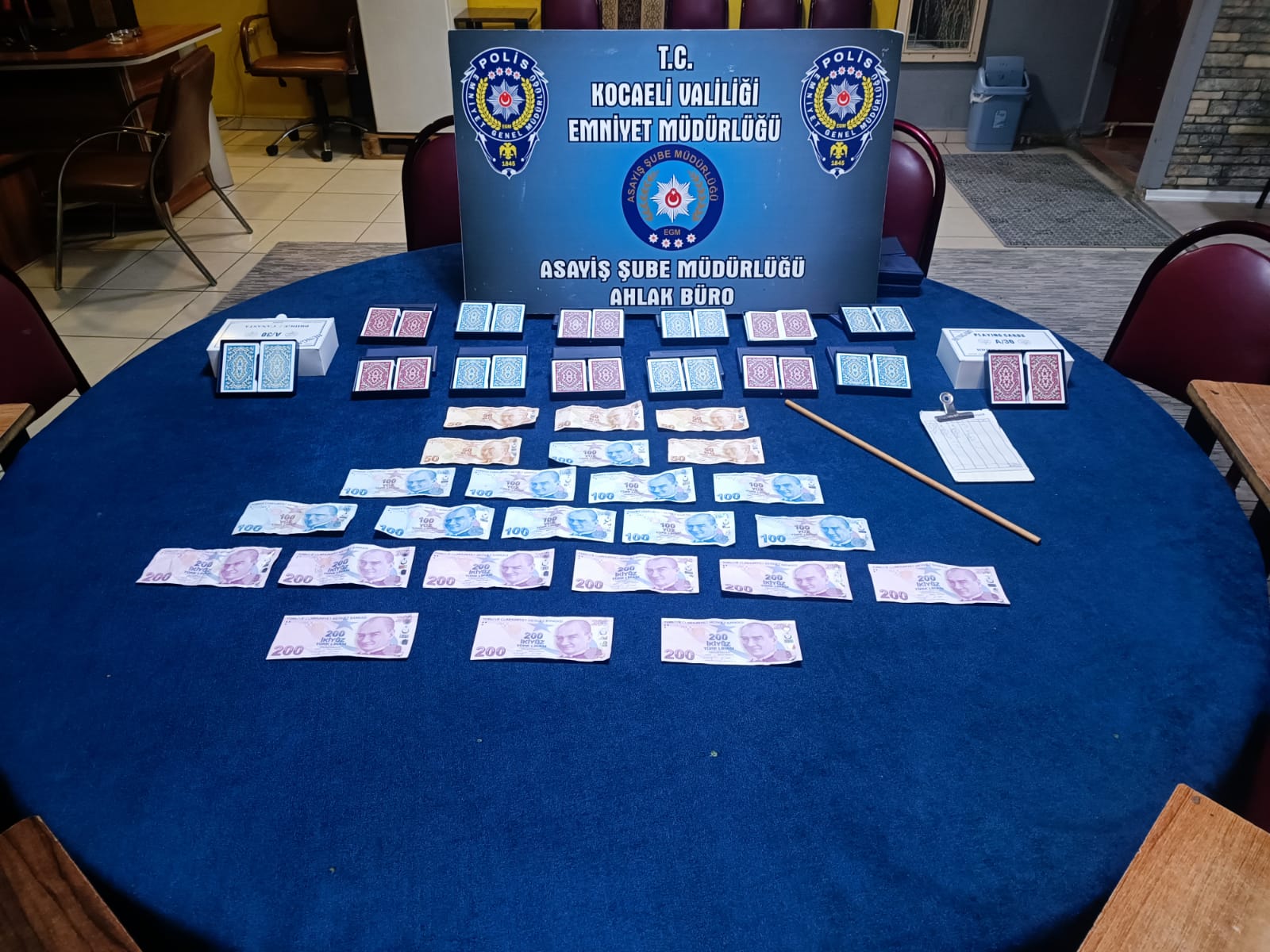 Kocaeli Emniyet Müdürlüğü ekipleri, kumar oynamak için yer ve imkan sağlamak suçunun engellemesi için yapılan çalışmalar kapsamında Gebze’de bir kıraathanede denetim yaptı.