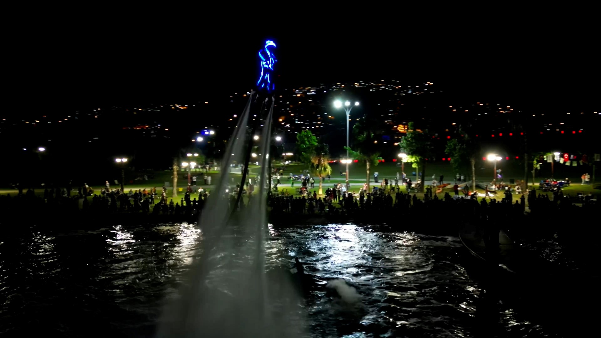 Kıyıda binlerce vatandaş, geceye özel hazırlanan ledlerle donatılmış ışıklı elbisesi ile denizde akrobatik gösteriler yapan Kahraman Aktaş'ı izlemek isteyince sahil kıyısında adım atılacak yer kalmadı. Havai fişek ve lazer gösterisi eşliğinde gece yarısı düzenlenen flyboard gösterisi sahil boyunca renkli görüntülere sahne oldu. Gösteri sonrası hayranları milli sporcu Kahraman Aktaş ile fotoğraf çektirmek için birbirleriyle yarıştı.