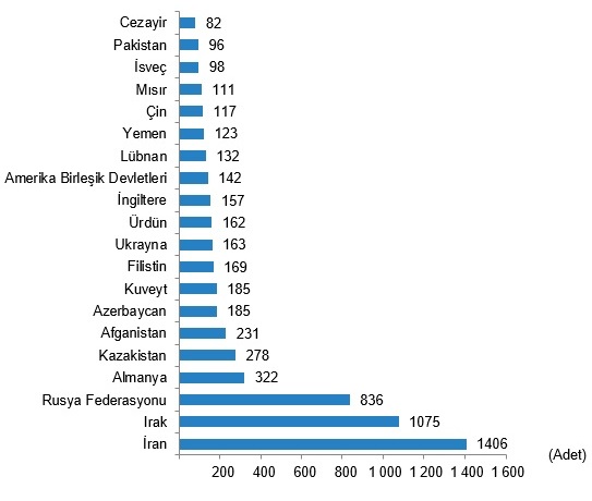 Kasım ayında İran vatandaşları Türkiye'den bin 406 konut satın aldı. İran vatandaşlarını sırasıyla bin 75 konut ile Irak, 836 konut ile Rusya Federasyonu vatandaşları izledi.