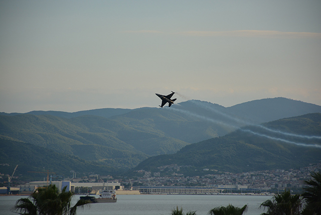 Türk Hava Kuvvetlerine ait SOLOTÜRK uçağı, Kocaeli semalarında gösteri uçuşu gerçekleştirdi. Yapılan uçuş, izleyenlere heyecan dolu anlar yaşattı. İzmit’in düşman işgalinden kurtuluşunun 101’inci yıl dönümünü dolayısıyla F-16 savaş uçaklarıyla gerçekleştirilen etkinliğe binlerce vatandaş katıldı. Seka Park Uçurtma Tepesi üzerinde F-16 savaş uçağıyla yapılan birbirinden zorlu manevralar izleyicileri mest etti. Bazı vatandaşlar uçuşu cep telefonuyla kayıt altına aldı. SOLOTÜRK kalkışı, SOLOTÜRK tonosu ve dünyanın en zor tekniklerinden biri olan ‘Saygı uçuşu’nu gerçekleştiren pilotlar, büyük alkış aldı. İzmit semalarında yapılan akrobatik hareketler yaklaşık yarım saat sürdü.