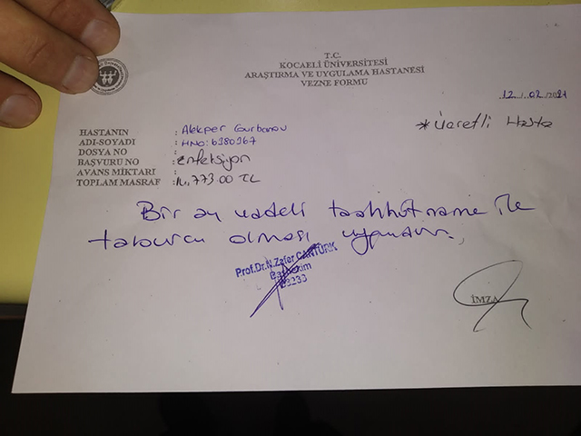 Maddi durumları yerinde olmayan kadın, bu fatura bedelini ödeyemedi. Bu yaşanan sıkıntının üzerine bir de eşi Corona oldu. Hastaneye yatırıldı. Hastaneye yatırılan kadının kocasına ise 15 bin lira borç çıkarıldı. Hastaneye borcunu ödeyemeyen Azerbaycan Türkü olan Ali Ekber Gurbanov, tam iyileşmeden hastaneden taburcu edildi.