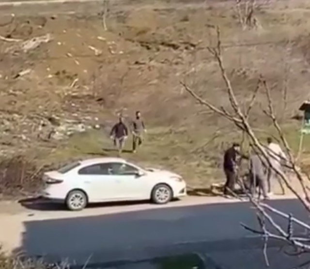 Bir vatandaş tarafından cep telefonu ile çekilen görüntüde, eski ortakların silahla birbirine ateş ettiği ve çevreden gelen bazı kişilerin ortaklardan birini darp ettiği görülüyor.