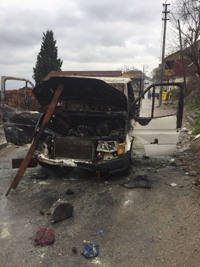 2 evi ve bir kamyoneti ateşe verdi, 2 evin de pencerelerini taşladı. Yangına müdahale için olay yerine gelen itfaiye ekiplerinin de üzerine yürüyen bir grup kadın, "Siz söndürün, biz yakacağız" dedi. Çok sayıda çevik kuvvet polisi bölgede geniş çaplı güvenlik önlemi aldı.