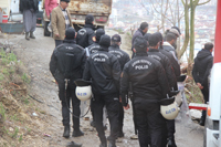 İhbarla olay yerine çok sayıda çevik kuvvet polisi, itfaiye ve sağlık ekibi sevk edildi. Kısa sürede olay yerine gelen ekipler, yangını söndürmek için çalışma başlattı. Yangını söndürmeye çalışan itfaiye ekiplerinin de üstüne yürüyen bir grup kadın, "Siz söndürün, biz yakacağız" dedi. Polis ekipleri, müdahalede bulunarak grubu olay yerinden uzaklaştırdı, bölgede geniş çaplı güvenlik önlemi aldı.
