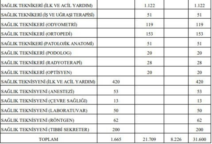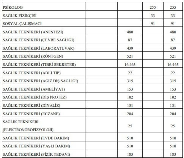 ÖSYM’ye veya Sağlık Bakanlığına posta yoluyla gönderilen veya elden verilen tercih listeleri geçerli olmayacak. Sağlık Bakanlığı tarafından alınacak olan sözleşmeli personelin pozisyonlarının unvan/branş ve öğrenim düzeylerine göre dağılımı şöyle belirtildi: