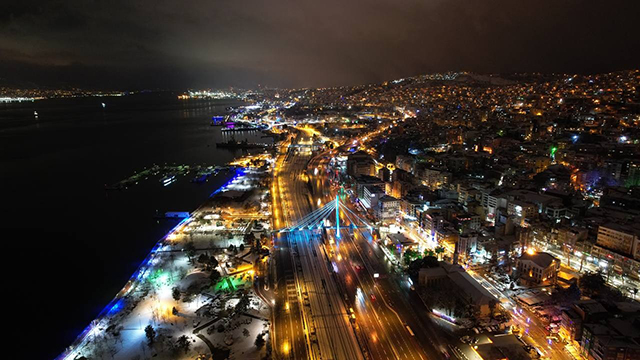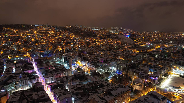 Dört mevsim ayrı bir güzelliğe bürünen Kocaeli'de akşam saatlerinde çekilen kış fotoğrafları da hayranlık uyandırdı. Kar ve şehrin ışıklarının birleştiği kış güzelliği, dron ile havadan da görüntülendi.