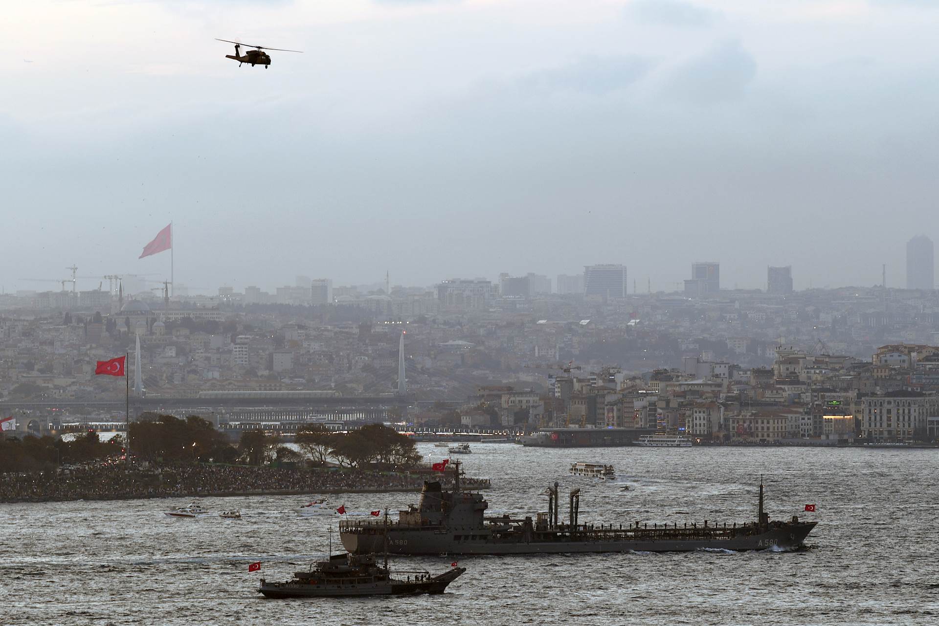 TCG ANADOLU ile birlikte toplam 100 savaş gemisinin İstanbul Boğazı’nda gerçekleştirdiği geçit törenine halkımız yoğun ilgi gösterdi. Boğaz’ın her iki yakasını hıncahınç dolduran vatandaşlarımız, Türk bayraklarıyla donanmamızın kahramanlarını ve göklerin kartallarını selamladı.
