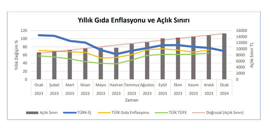 Türkiye İşçi Sendikaları Konfederasyonu (TÜRK-İŞ), Ocak 2024'e ilişkin açlık ve yoksulluk sınırı verilerini açıkladı.