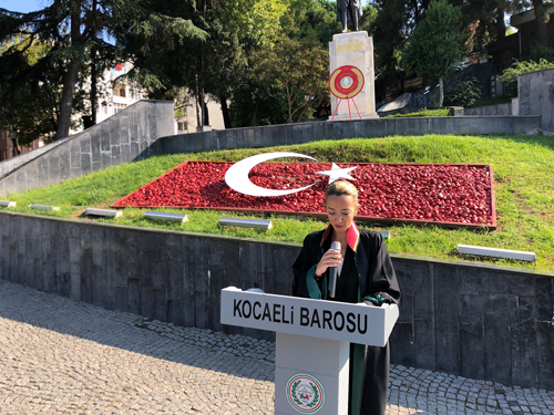 Çelenk sunumu ve İstiklal Marşı’nın okunmasının ardından Kocaeli Baro Başkanı Bahar Gültekin Candemir,bir konuşma gerçekleştirdi. Candemir,