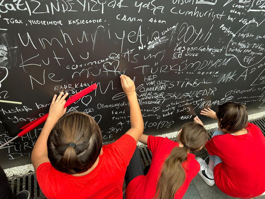 Genç nesiller, tüm halkın yoğun katılımıyla yüzüncü yıl anı tahtasına imzalarını attılar. Bu etkinlik, cumhuriyetimizin 100. yılına yakışır bir şekilde gerçekleştirildi.