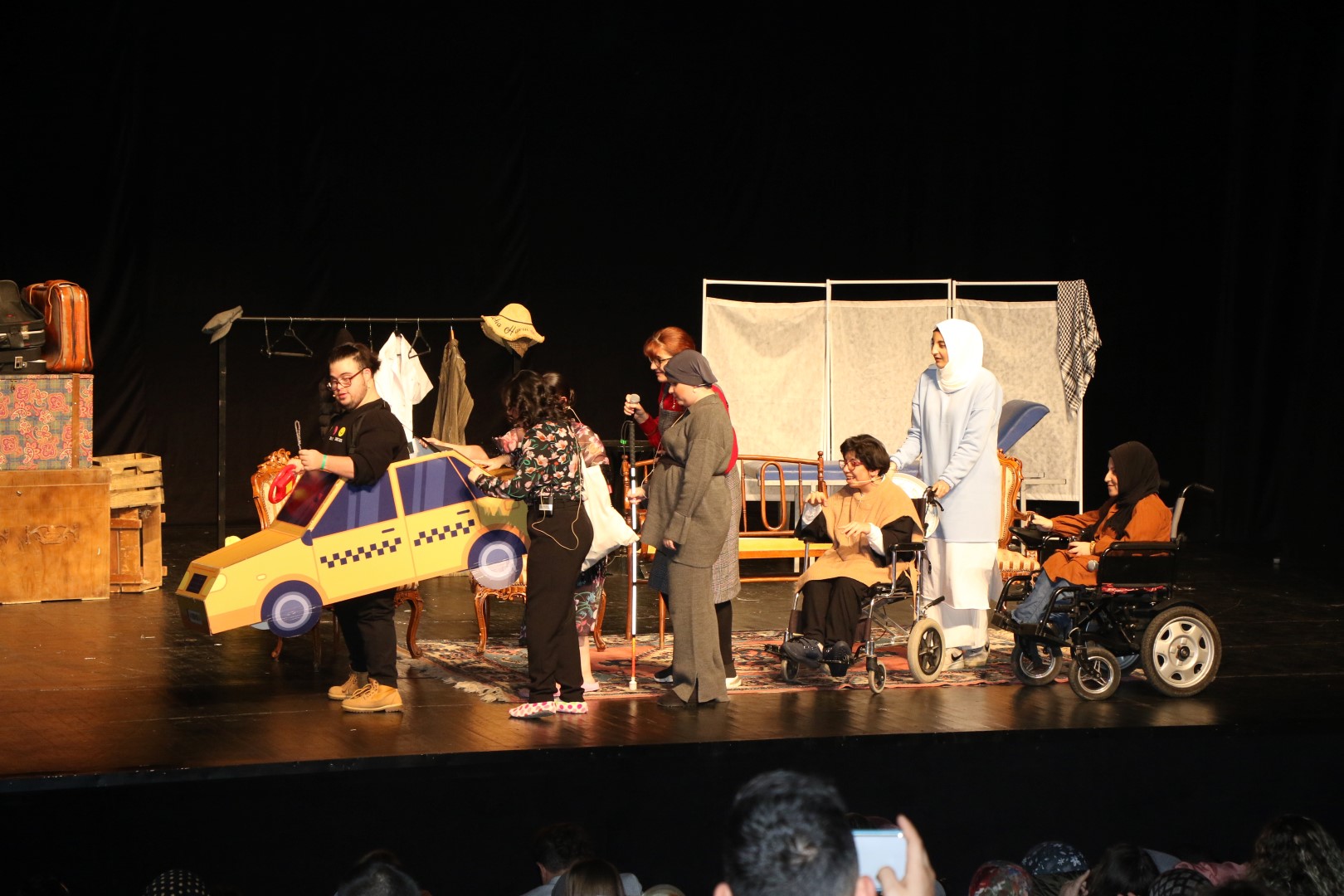 Tiyatro oyununa Kocaeli Büyükşehir Belediyesi Genel Sekreter Yardımcısı Hasan Aydınlık, Devlet Tiyatrosundan emekli sanatçı İbrahim Şahin, sivil toplum kuruluşları, özel gereksinimli aileler ve çocukları katıldı. Emekli sanatçı İbrahim Şahin yaklaşık 18 yıl önce özel çocuklarımızla gönüllü olarak çalışmaya başladığını belirtti. Anlama ve anladıklarını kavrama, eyleme geçirmek için eğitimlerin şart olduğumu belirten Şahin, ‘’Bu tür eğitimler öğrencilerin kendilerini anlatabilmelerine katkı sağlıyor. ‘Ben bir şey yapabildim’ diyebiliyorlar. Hayatlara dokunabilmek çok önemli. Bu tür çalışmaların içinde olmak ve elimizden geldiğince gücümüz yettiğince ailemizle birlikte destek olmaya çalışıyoruz’’ dedi.