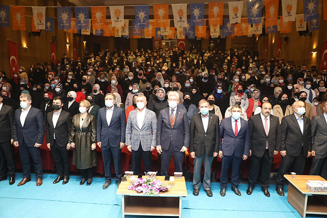 “Bunlar ne yaparsa yapsınlar biz milletimize hizmet etmeyi sürdüreceğiz. Bakın, 29 Ekim’de İstanbul Taksim’de Atatürk Kültür Merkezi modern mimarisi ve çok amaçlı çağdaş yapısıyla yeniden açıldı. Bunlar değil miydi, 2013’te aynı iftira ve yalan kumpasıyla üzerimize gelip, ‘Bunlar mücahitken Taksim’e cami yapmak istedi, şimdi müteahhit oldular Taksim’e AVM yapacaklar’ diye yalan konuşan. Cumhurbaşkanımız bu yalan ve iftiralara aldırış etmeden, Taksim’e hem cami, hem opera salonu yapacağım dedi ve yaptı. Şimdi çıkıp özür diliyorlar mı? Hayır. Çünkü tek işleri ve görevleri milletimizin aklını bulandırmak, bizi yolumuzdan alıkoymak, ülkemize hizmet sevdamızdan bizi vazgeçirmek. Ama daha yapacak çok işimiz var. Yorulmak, bıkmak, usanmak yok. Güven ve istikrar için, Türkiye için yolumuza emin adımlarla, milletimizin de desteğiyle devam edeceğiz”. Danışma Meclisi, Ellibeş Başkanlığındaki Divan Heyetinin teşkilatın soru ve önerilerini cevapladığı bölümle sona erdi.