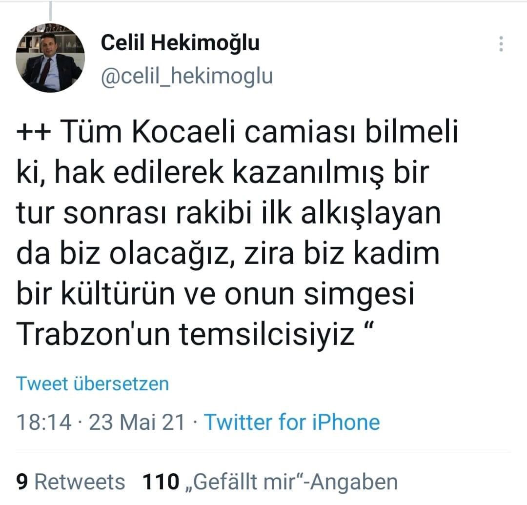Hekimoğlu Trabzon kulübü başkanı Celil Hekimoğlu sosyal medya hesabından yayınladığı mesajda;